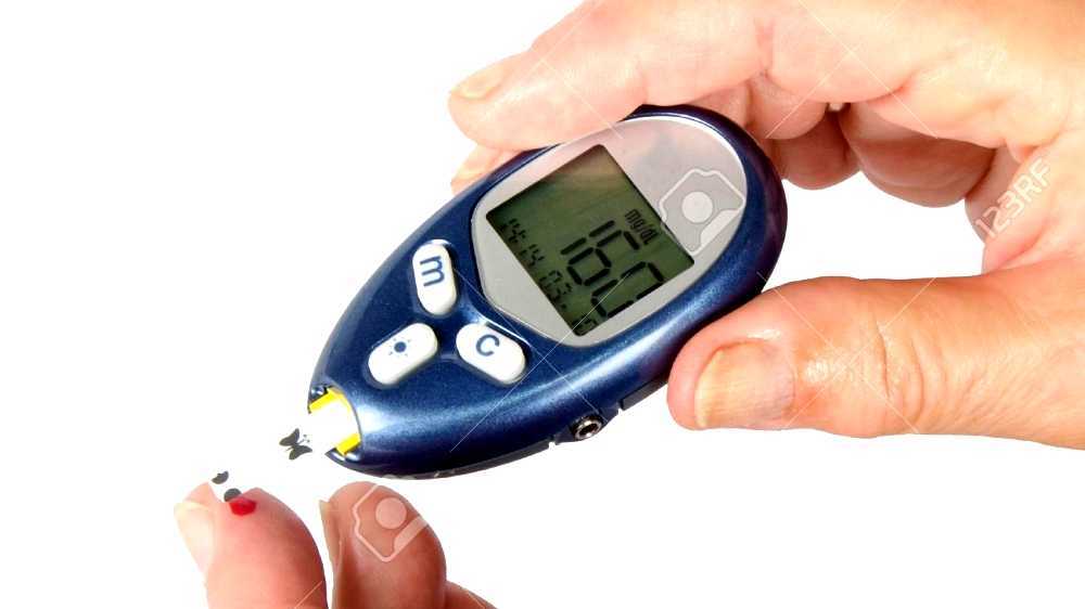 A glucose meter is a medical device for determining the approximate concentration of glucose in the blood. It can also be a strip of glucose paper dipped into a substance and measured to the glucose chart. It is a key element of home blood glucose monitoring (HBGM) by people with diabetes mellitus or hypoglycemia. A small drop of blood, obtained by pricking the skin with a lancet, is placed on a disposable test strip that the meter reads and uses to calculate the blood glucose level. The meter then displays the level in units of mg/dl or mmol/l.